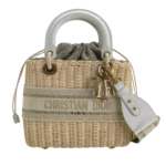 The Lady Dior handbag embodies our idea of elegance and beauty. Crafted from natural-colored, hand-woven wicker, the timeless design is a prime example of Dior’s savoir-faire. The style with inner bag in Dior Oblique Jacquard in latte color features a drawstring waist and a ribbon on the front with “CHRISTIAN DIOR” embroidery. The “D.I.O.R.” metal charms with an antique gold finish add an elegant touch. The medium-sized Lady Dior bag can be carried in the hand.
