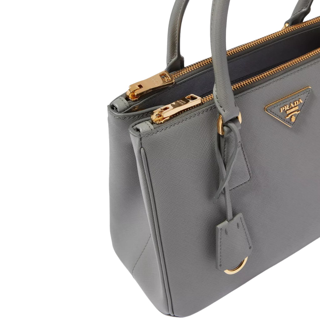 Prada Grey Saffiano Lux Leather Mini Double Zip Tote