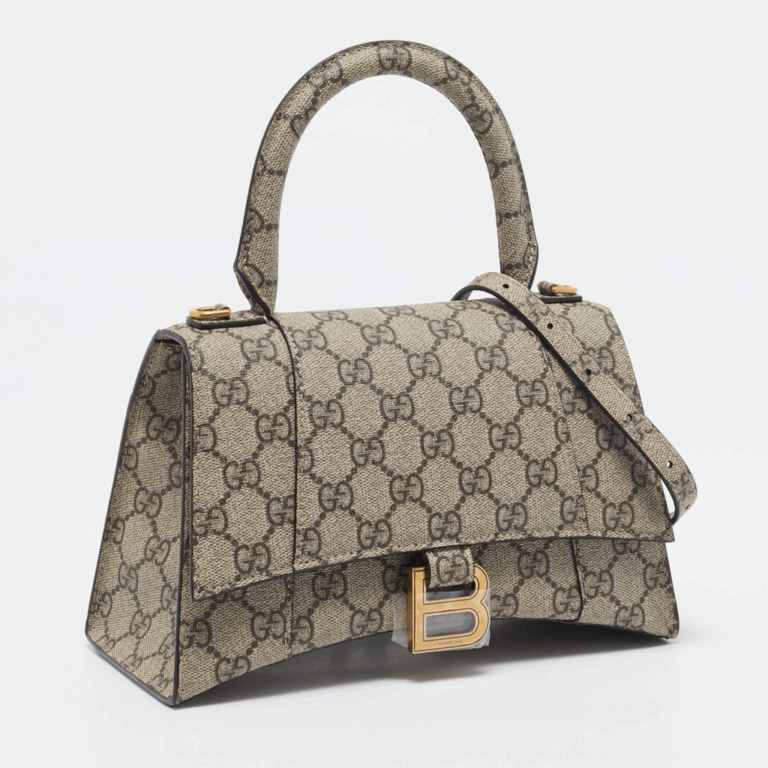 Gucci x Balenciaga Beige/Brown GG Supreme Canvas Hourglass Top Handle Bag